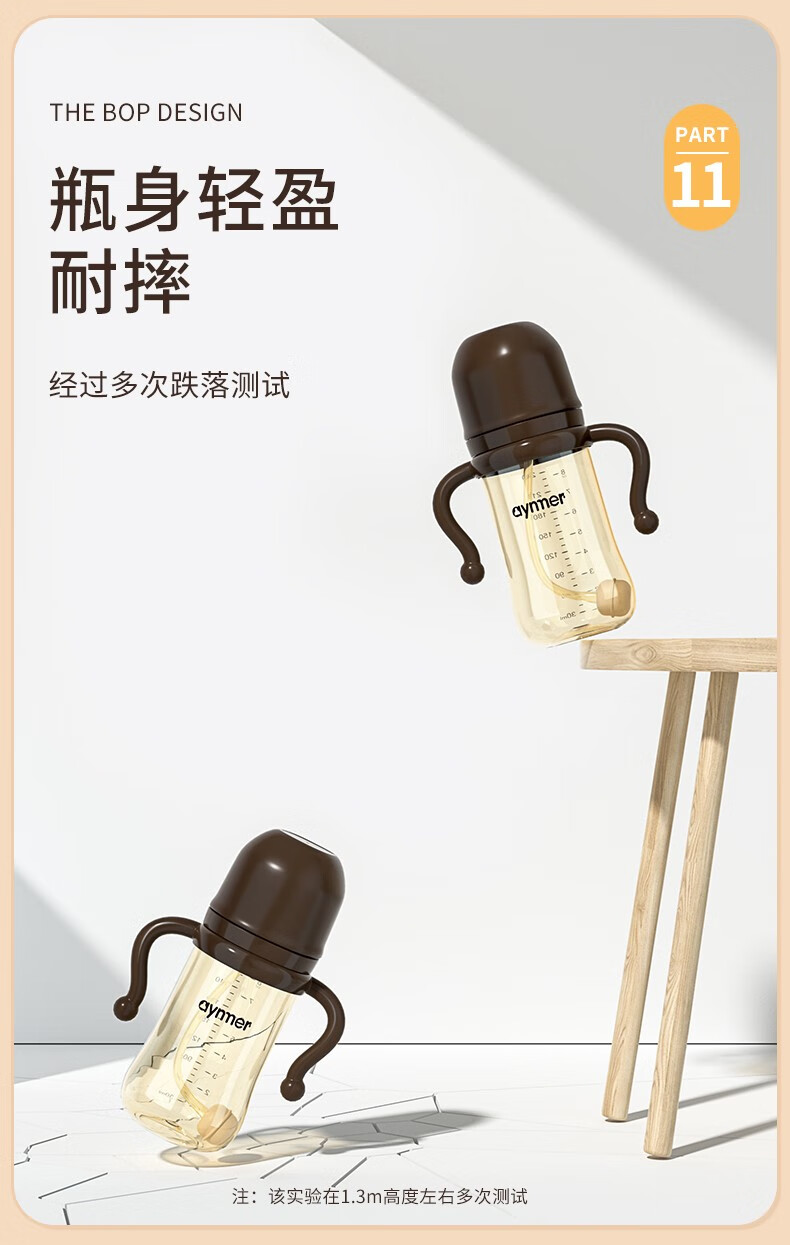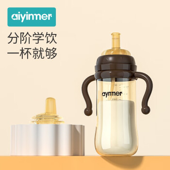 Aynmer Ainmei Children's Water Cup Baby Suction Mouth Baby Bottle Suction Cup Learning Drink Cup Milk Cup Drinking Cup Drop Resistant 300ml (with built-in suction nozzle)+2 suction nozzles+cleaning kit [Image price brand quotation]-