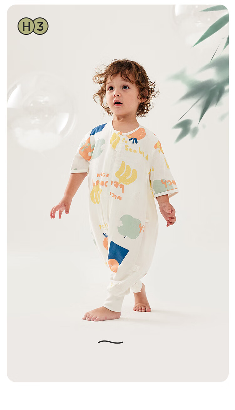 WELLBER Baby Sleeping Bag Children's Front 4 Back 2 Bamboo Cotton Split leg Sleeping Bag Spring/Summer Breathable Thin Sea Journey 75cm