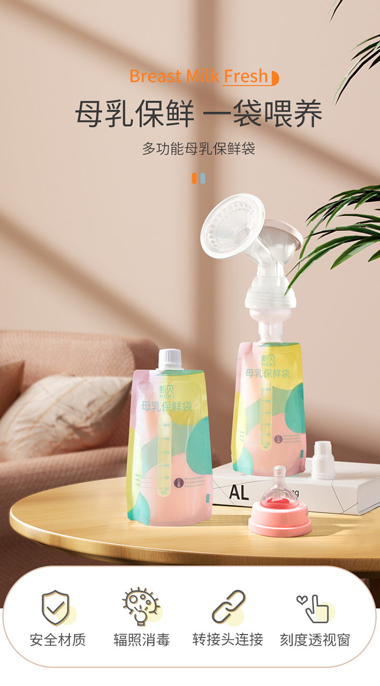 Xinbei milk storage bag, breast milk storage bag, fresh-keeping bag, milk storage bag 200ml * 30 pieces, can be connected to a breast pump